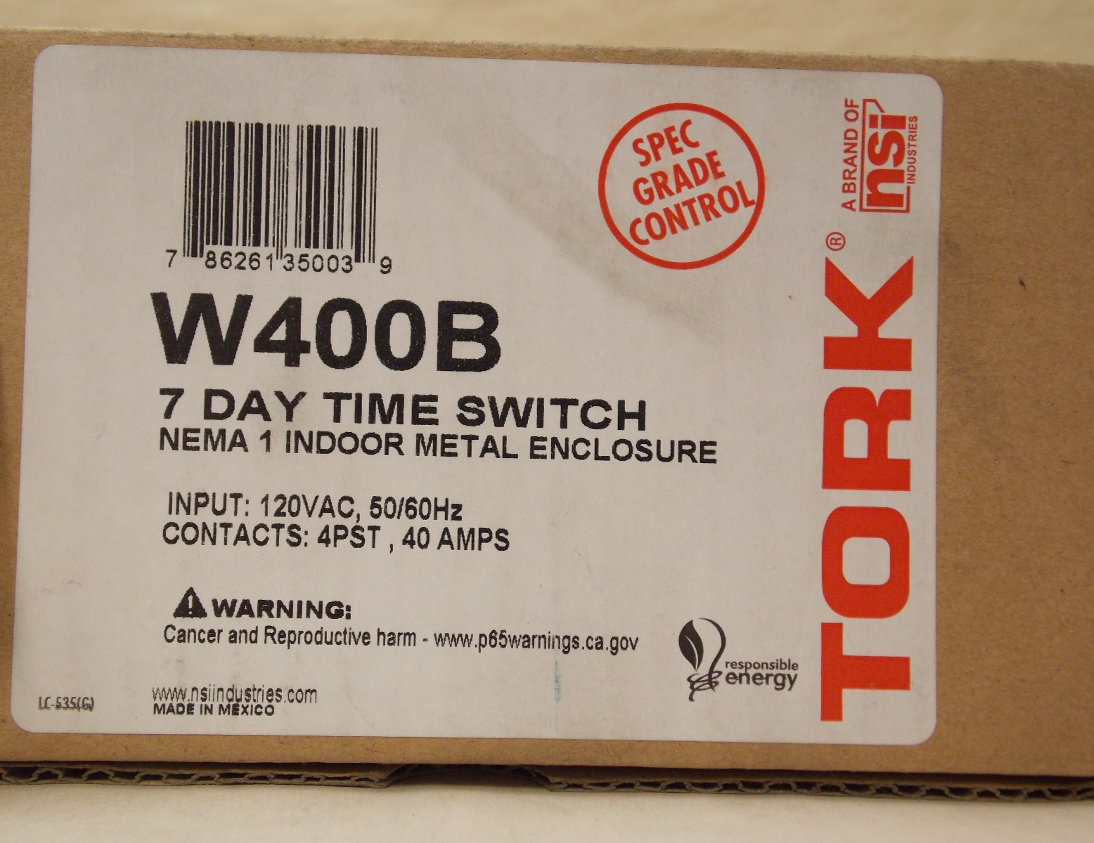 NSI Tork W400B 7 Day Time Switch, Different Daily Schedules, 40A, 120V, Indoor