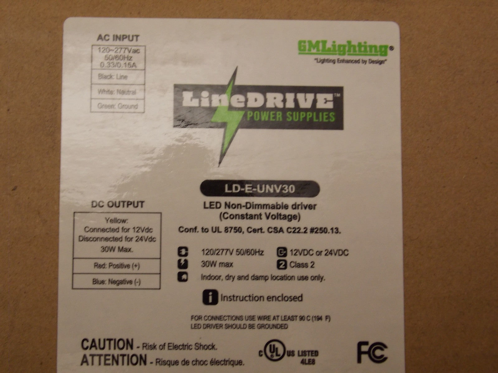 GM Lighting LD-E-UNV30 12/24VDC 30W LED Non-Dimmable LineDRIVE Power Supply