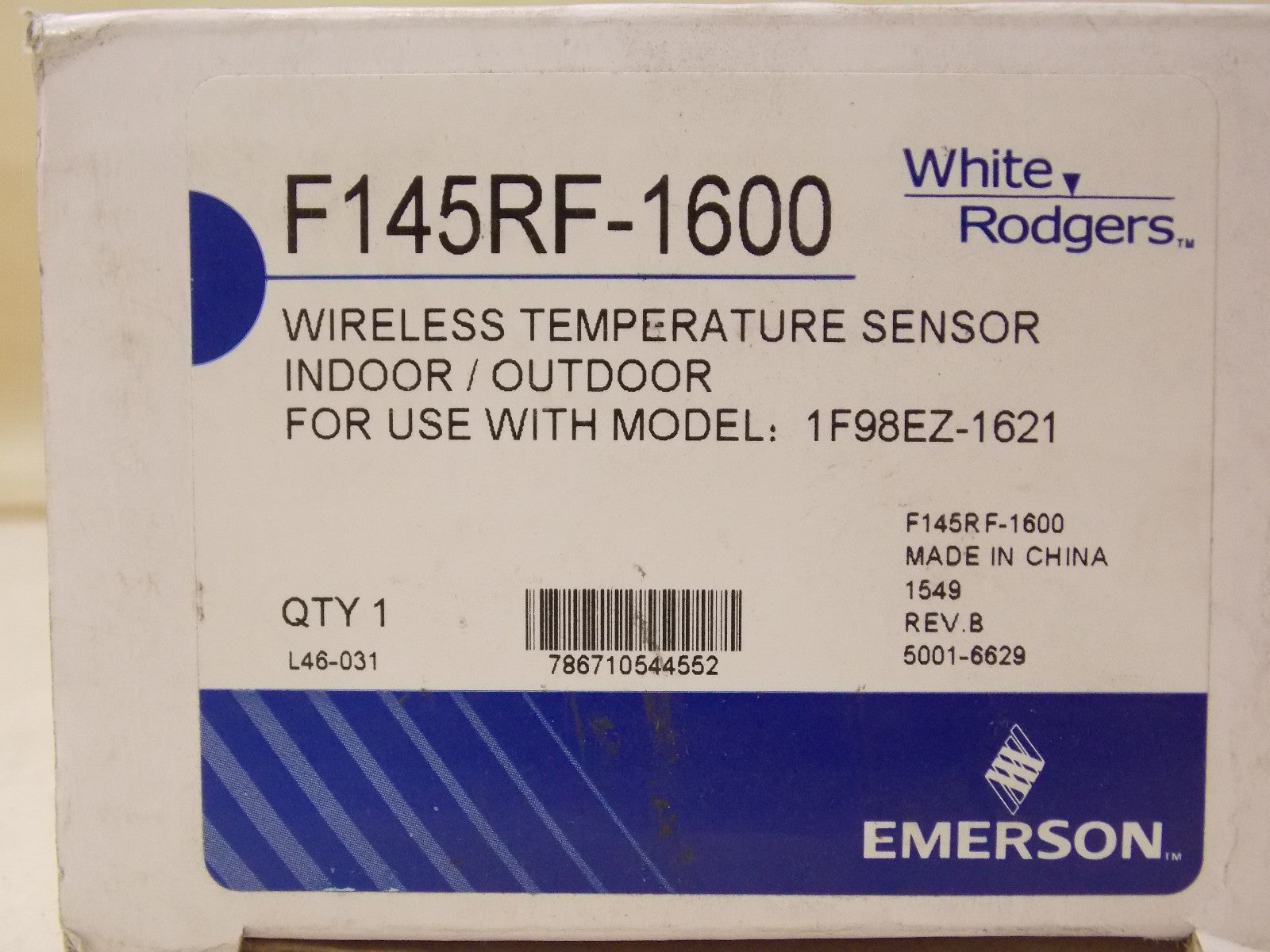 WHITE RODGERS EMERSON F145RF-1600 Wireless Remote Sensor - Indoor/Outdoor