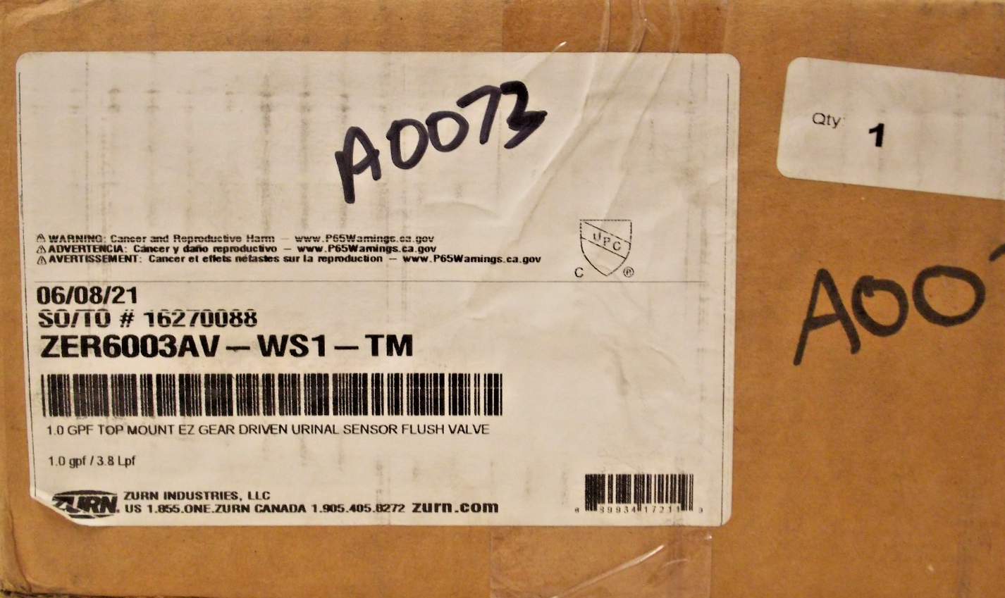 Zurn ZER6003AV-WS1-TM 1.0 GPF Diaphragm Sensor Urinal Flush Valve