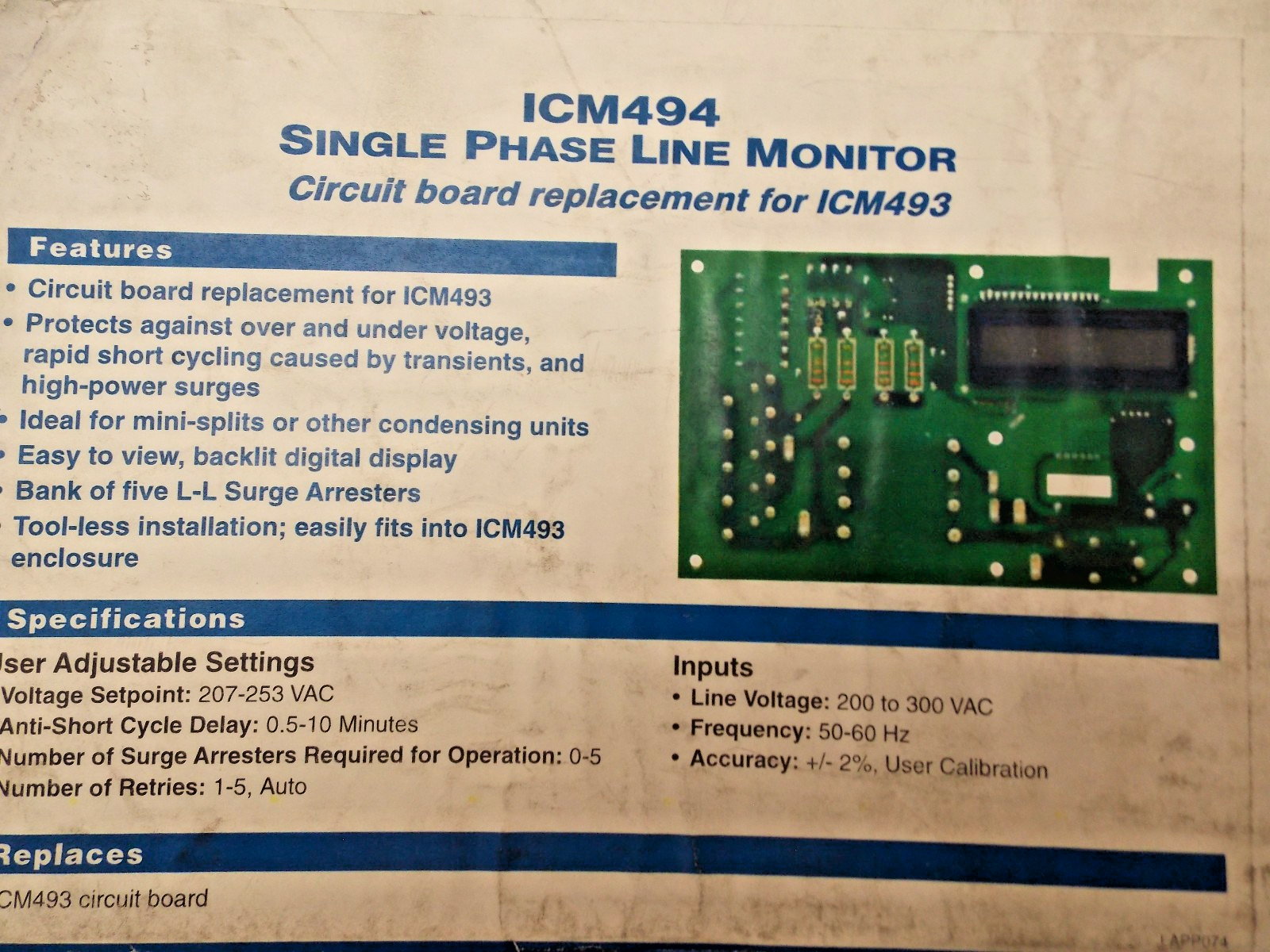 CM Controls ICM494 Single-Phase Surge Protective, Replacement Board For ICM493