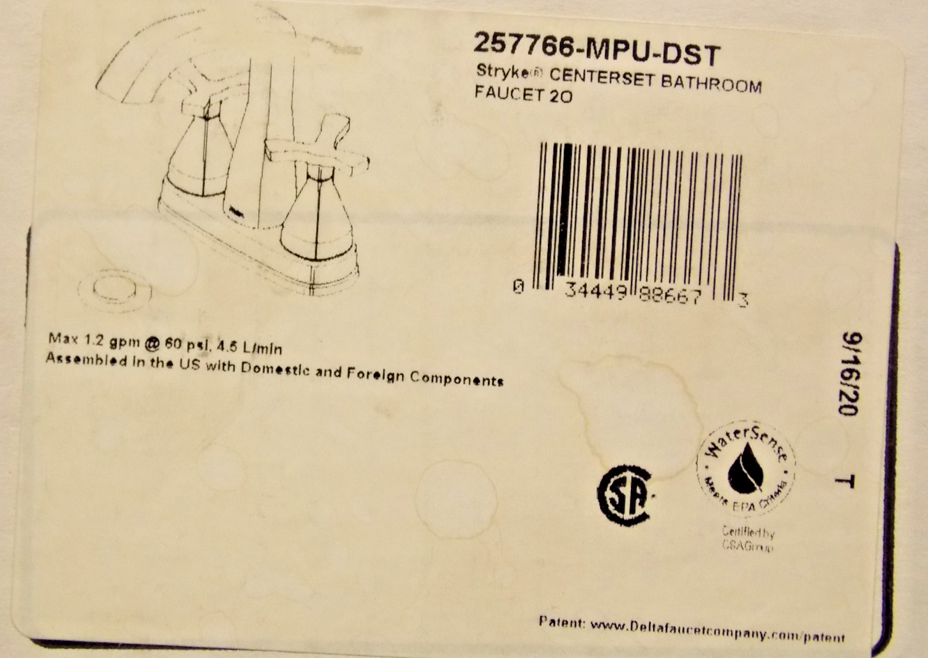 Delta 257766-MPU-DST Stryke Centerset Bathroom Faucet - Chrome