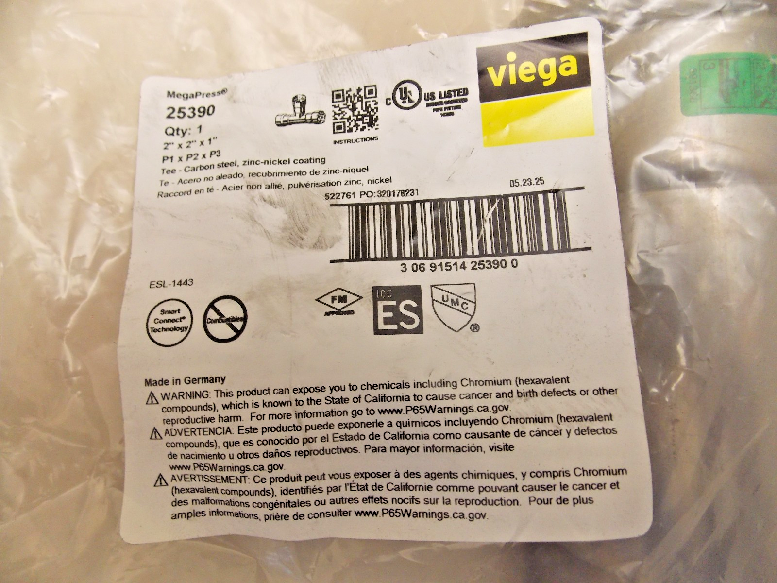 Viega 25390 MegaPress Tee Carbon Steel 2" x 2" x 1"
