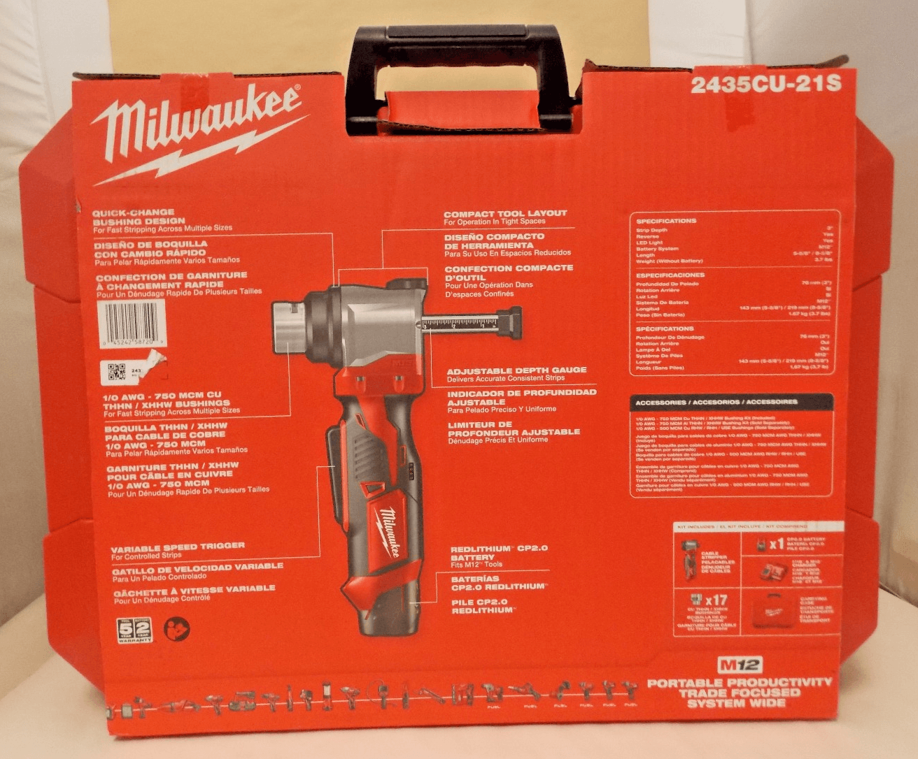 Milwaukee 2435CU-21S M12 Cable Stripper Kit with 17 Cu THHN/XHHW Bushings