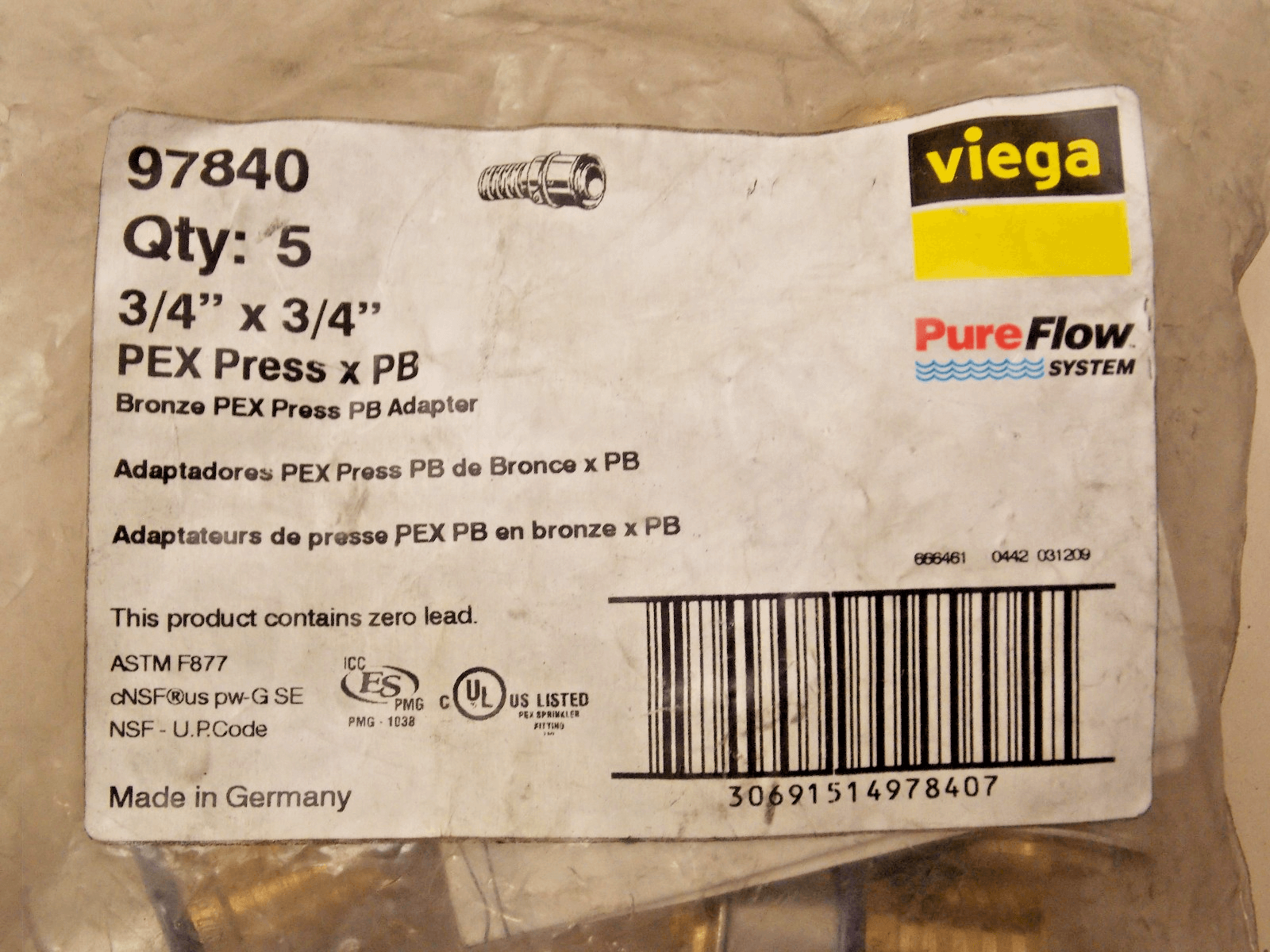 Viega 97840 3/4" PEX Press x 3/4" Polybutylene Adapter with Sleeve (Bag of 5)