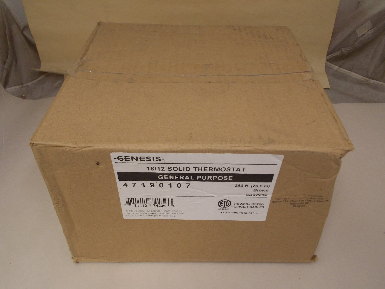 Genesis 47190107 18/12 Solid General Purpose Thermostat Cable 250' Reel , Brown