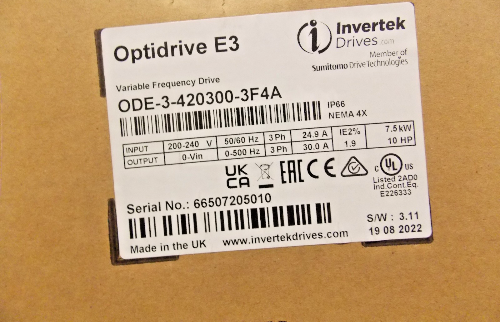 Invertek ODE-3-420300-3F4A Optidrive 10HP 30A 200V-240V 3Ph/3Ph VFD Exchange
