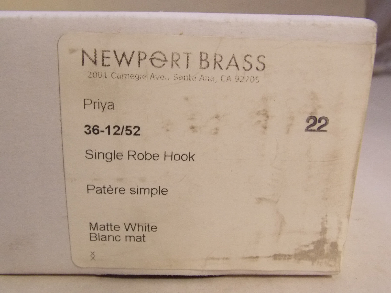 Newport Brass 36-12/52 Priya Single Robe Hook , Matte White Finish