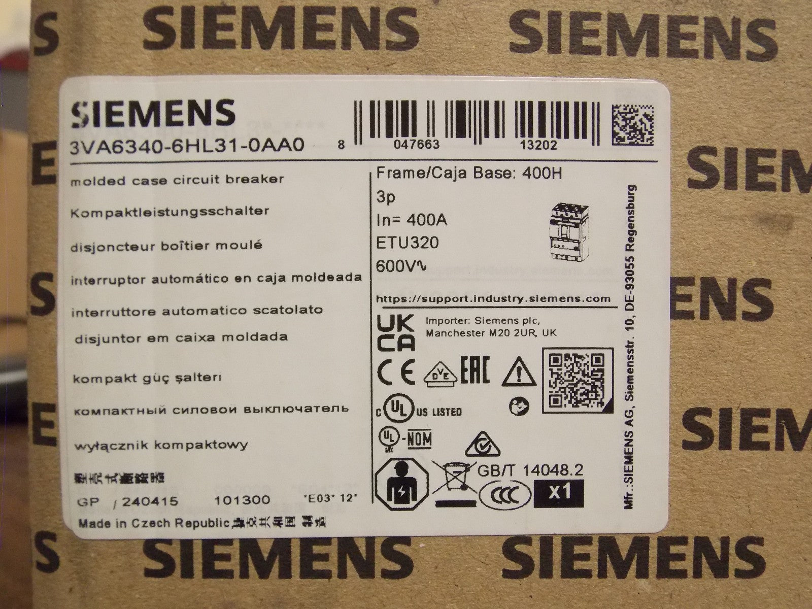 Siemens 3VA6340-6HL31-0AA0 3 Pole Circuit Breaker
