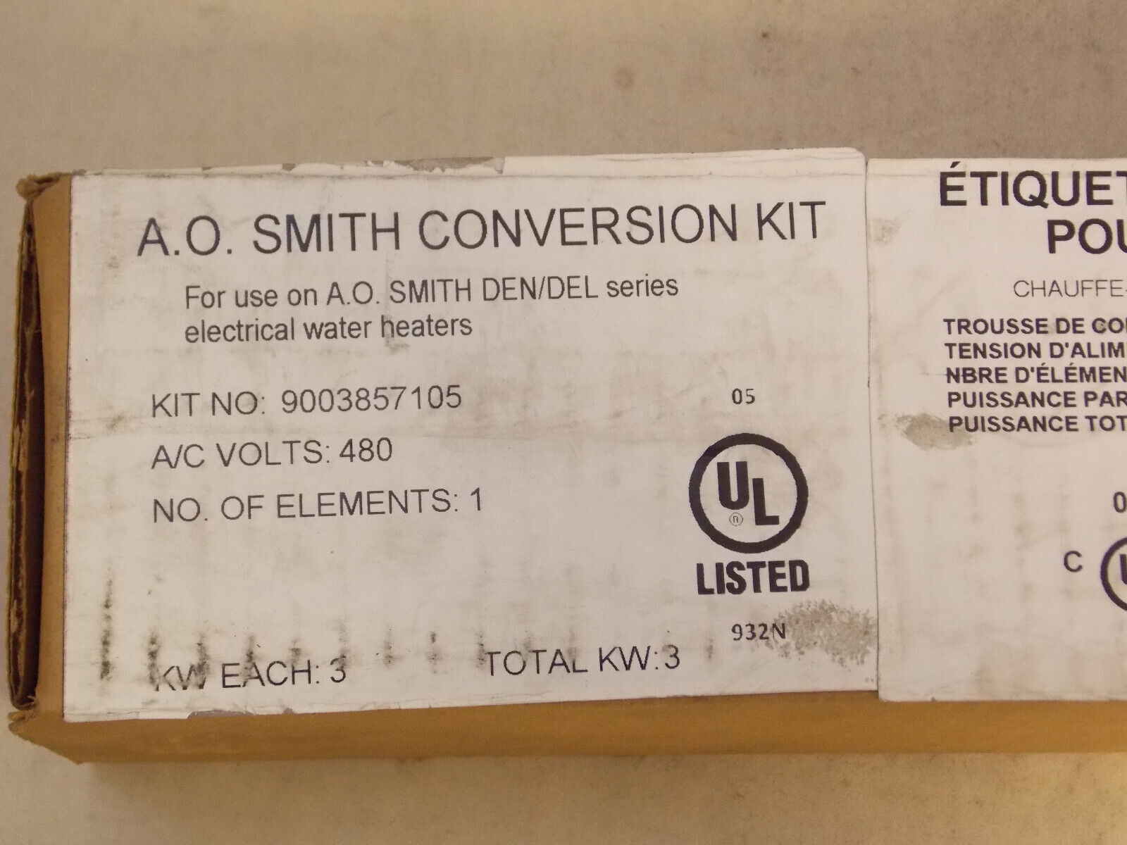 AO SMITH 100109564 3000W 480V 1-Element Conversion Kit DEN/DEL Series 9003857105