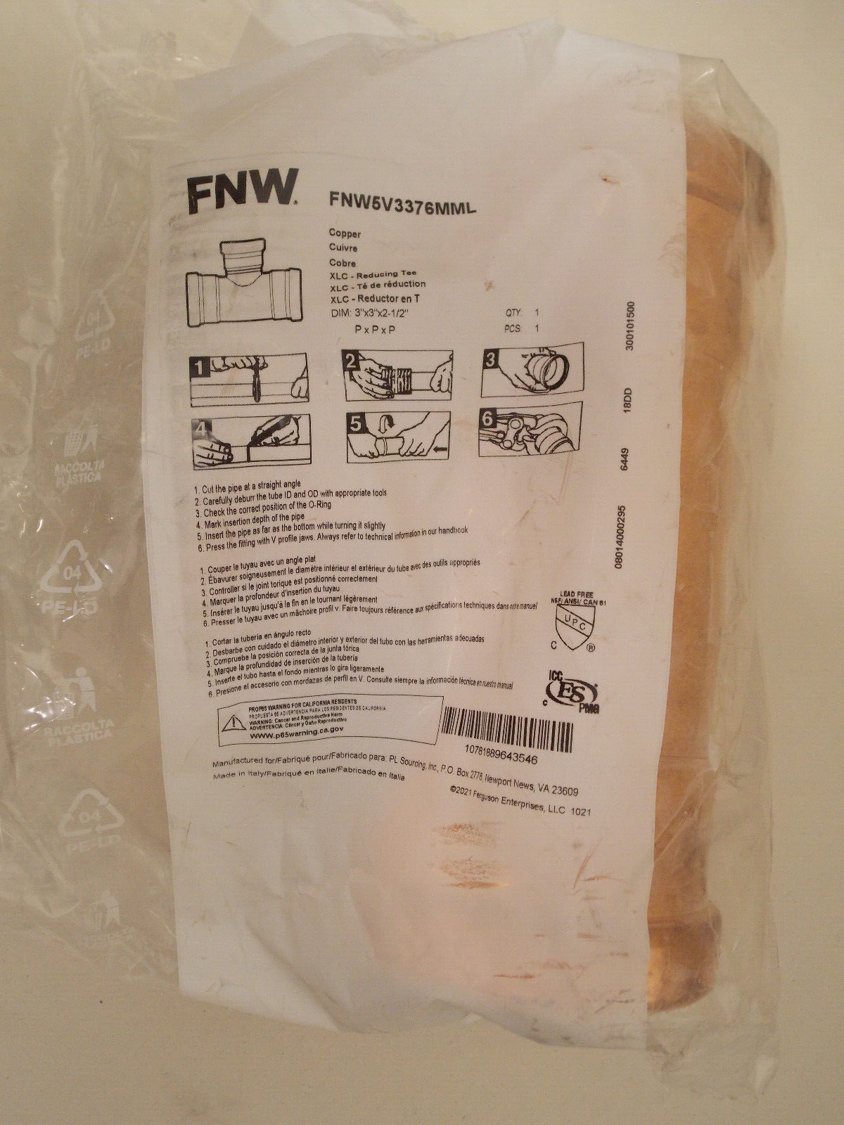 FNW 5V3376MML 3 x 3 x 2-1/2 in. Copper Press Tee PxPxP