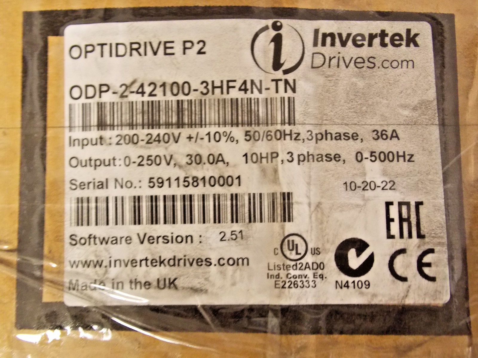 Invertek OptiDrive ODP-2-42100-3HF4N-TN Variable Frequency Drive, 30A 7.5kW 10HP