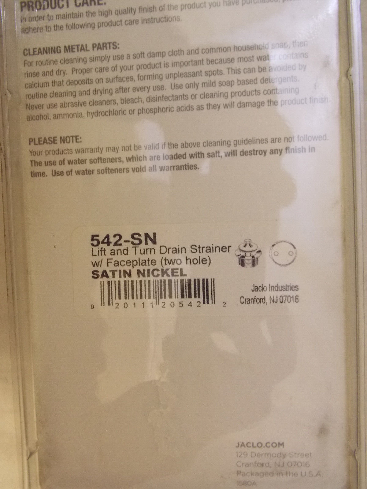 Jaclo 542-SN Lift and Turn Bathtub Drain Strainer with Faceplate in Satin Nickel