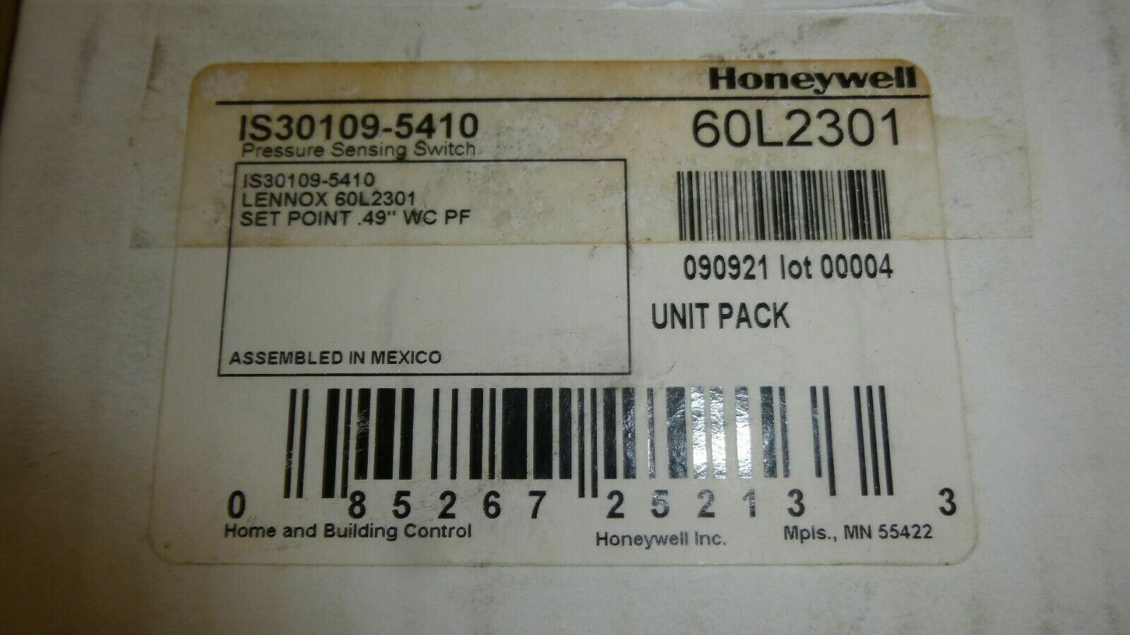 Lennox 60L2301 IS30109-5410 Pressure Sensing Switch. Set Point 0.49" WC PF. Item is new, unused and complete in a factory box. The box may be a bit dirty and worn from warehouse storage.