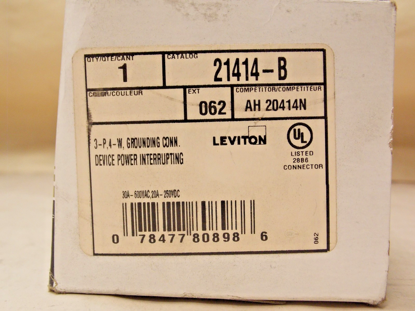 Leviton 21414-B Locking Non-NEMA Connector, 30A, 600VAC