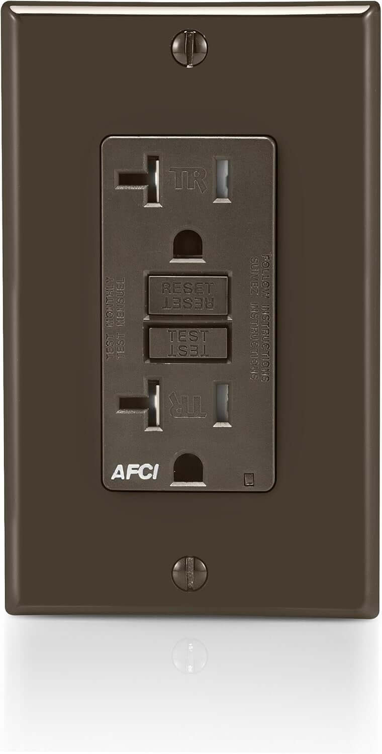 Leviton AFCI Outlet AFTR2 20Amp Self Test Tamper-Resistant w LED Indicator Brown