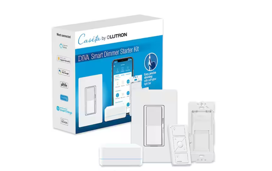 Lutron DVRF-BDG-1D Caseta Diva Smart Dimmer Starter Kit with Smart Hub & Remote