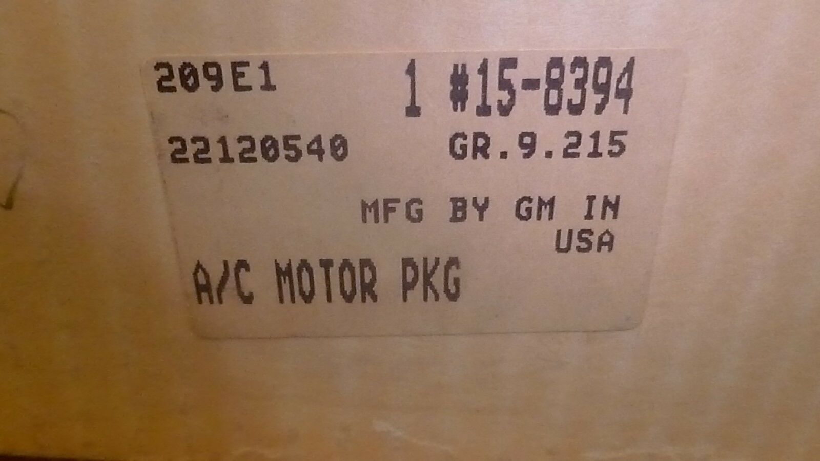 NOS NEW AC DELCO BLOWER MOTOR PART# 22120540