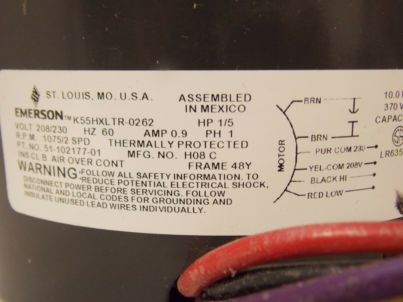 Protech HVAC Blower Motor 51-102500-08 Rheem 1/5Hp 208-230V 1075Rpm 2Sp Mtr