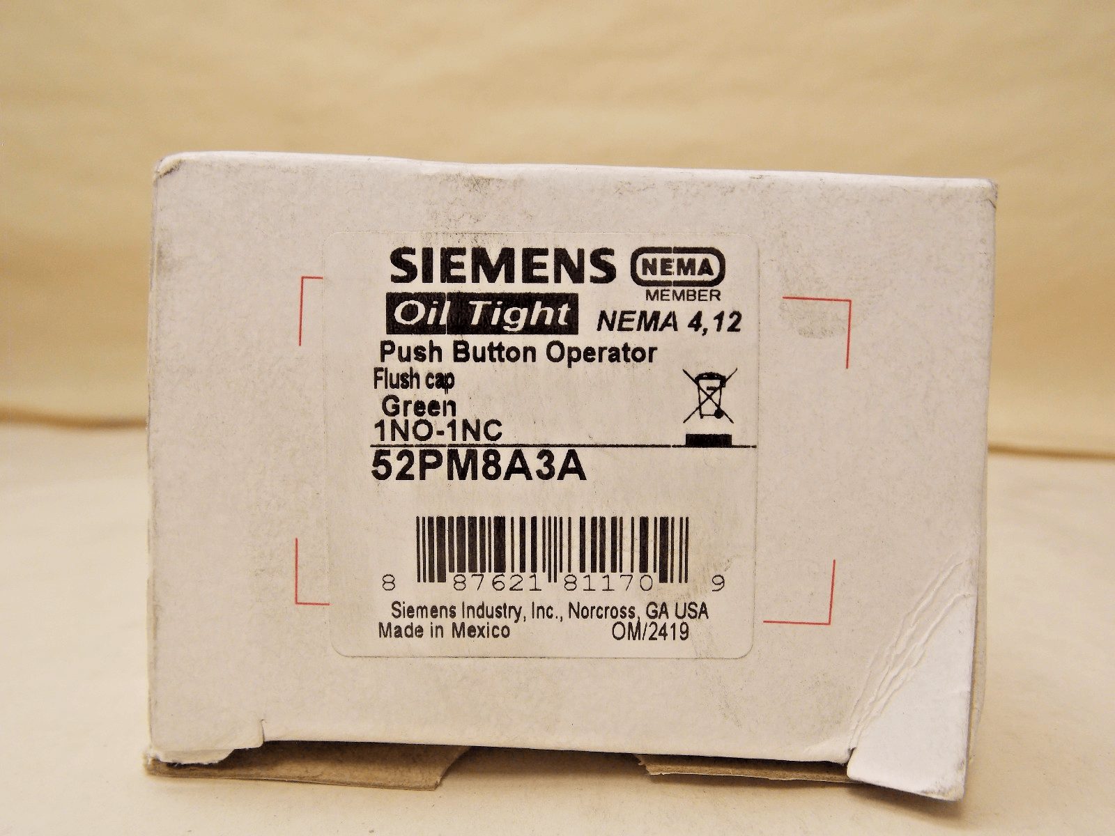 Siemens 52PM8A3A Command/Class 52 Non-Illuminated Round Pushbutton