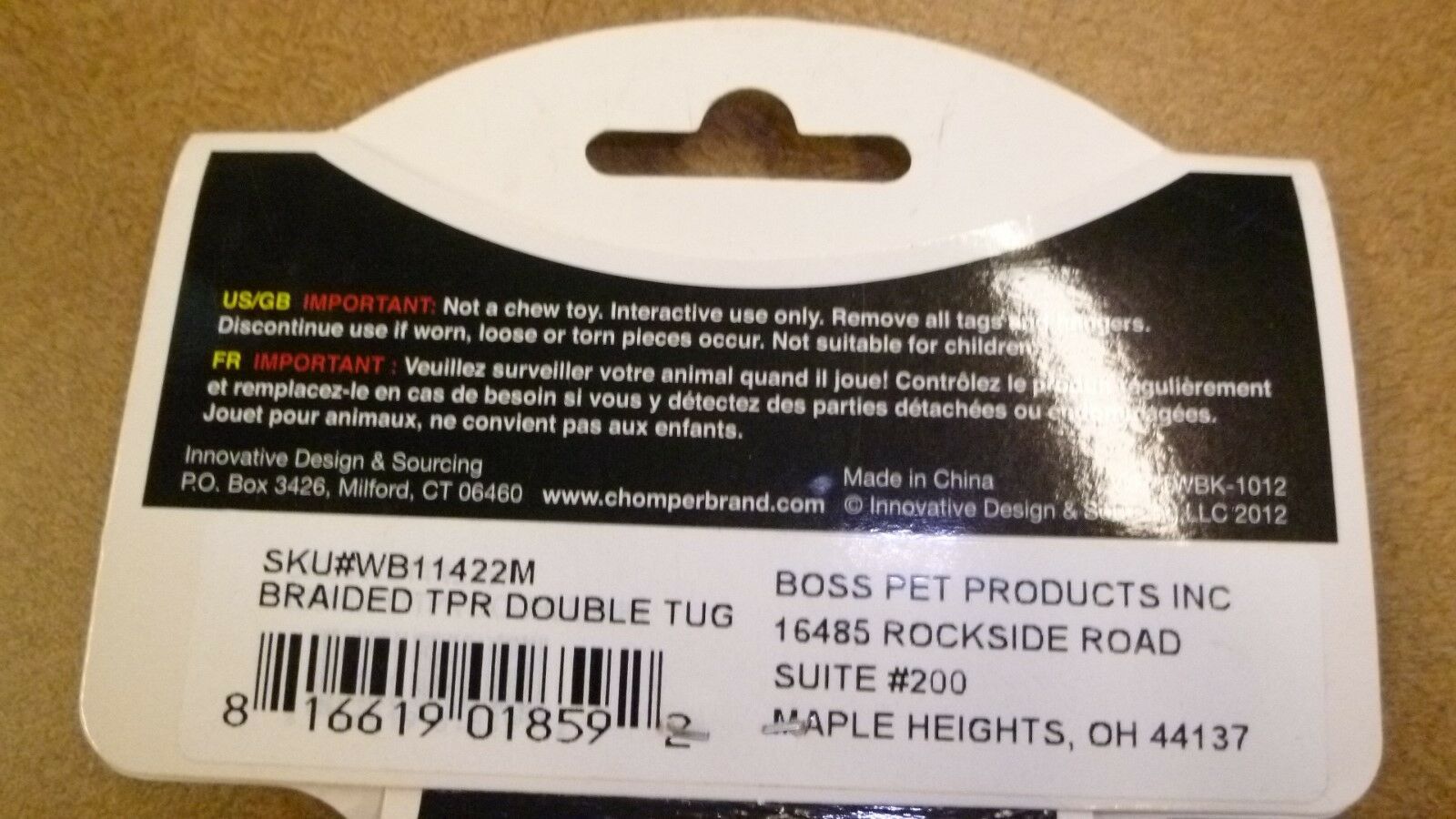 Tug,Braided Tpr Double,No WB11422M, BOSS PET PRODUCTS Assorted Colors Dog Toy